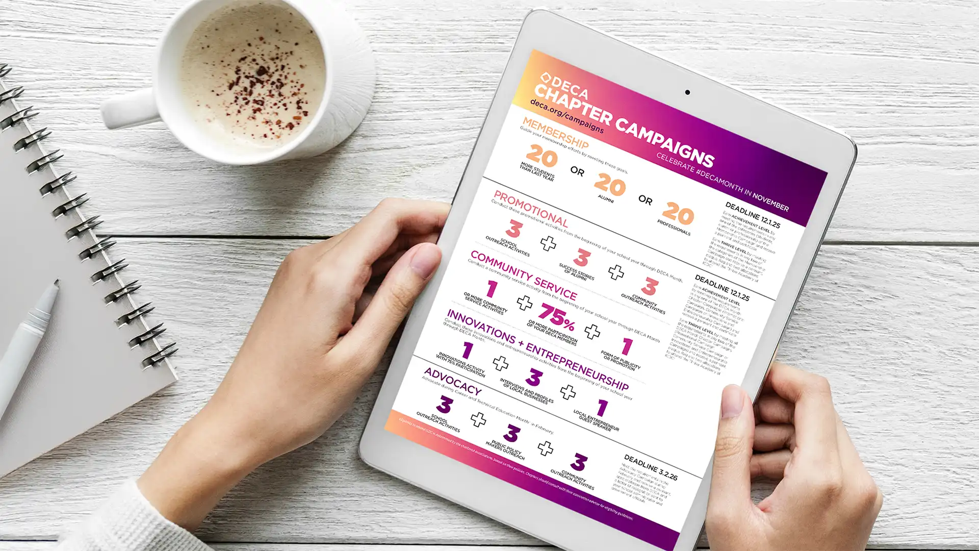 Use DECA's Chapter Campaign Guidebook for a detailed overview of each campaign and helpful tools to assist your members through the process.